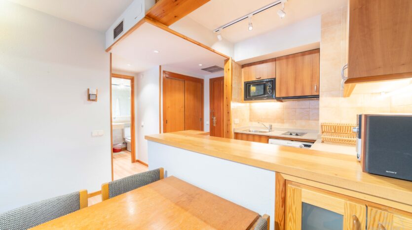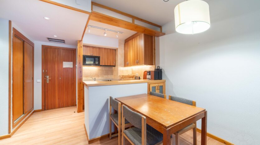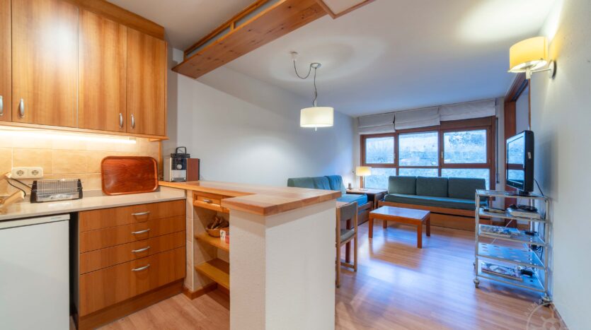 A tan solo unos pasos del telesilla del Bosque y el telecabina de 1500, este inmueble es ideal para los amantes de la nieve y la montaña. Con una superficie construida de 55 m², cuenta con una cocina americana abierta que se integra perfectamente con un amplio salón, creando un espacio acogedor y luminoso. El dormitorio es perfecto para descansar tras un día de esquí, y el baño está completamente equipado para tu comodidad.