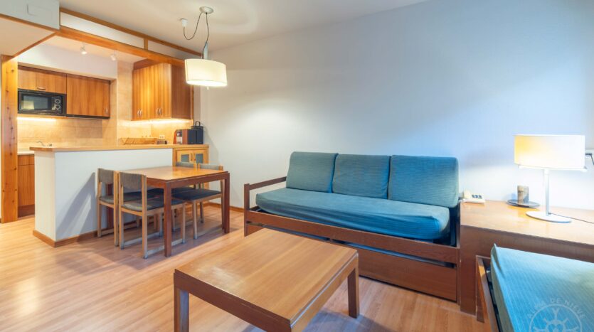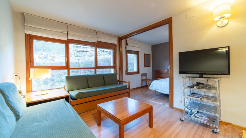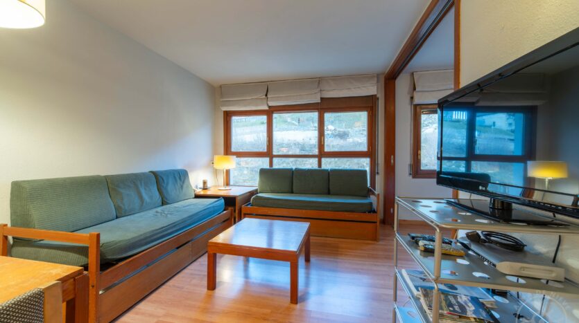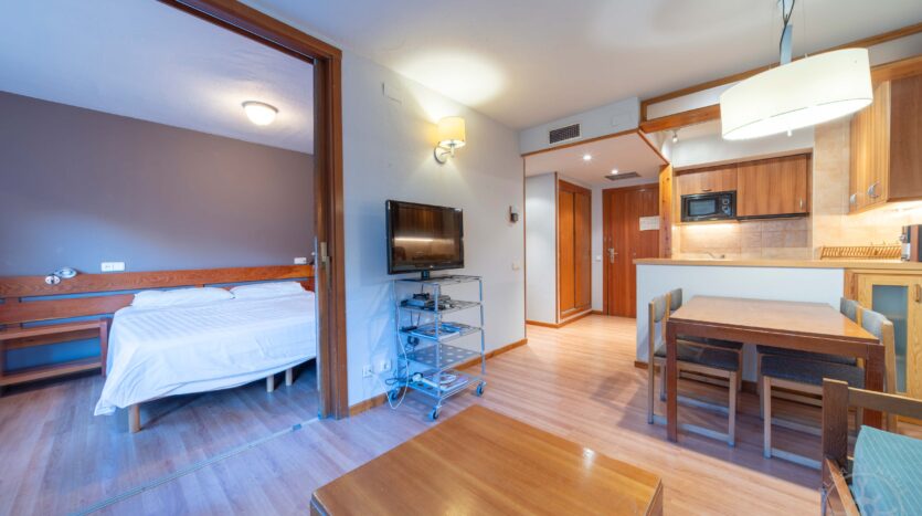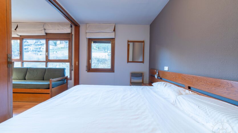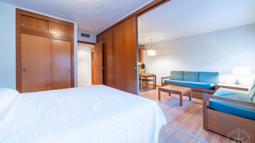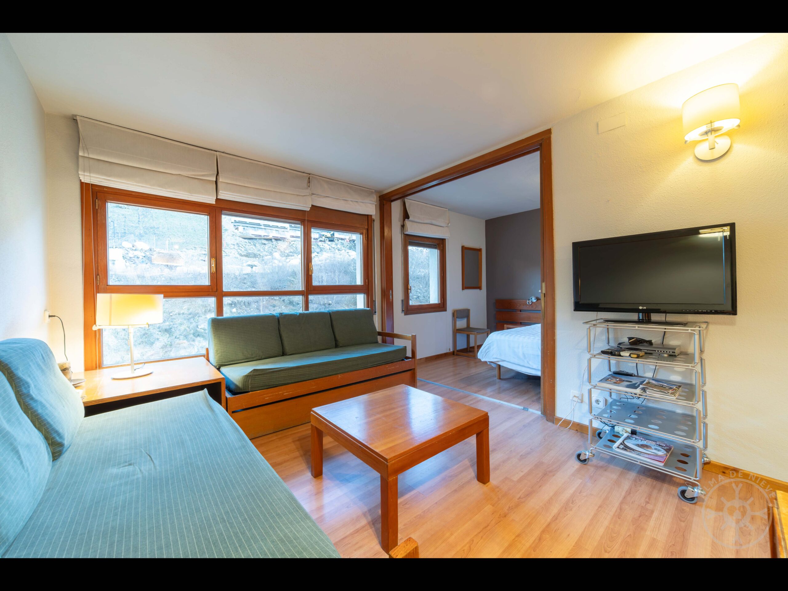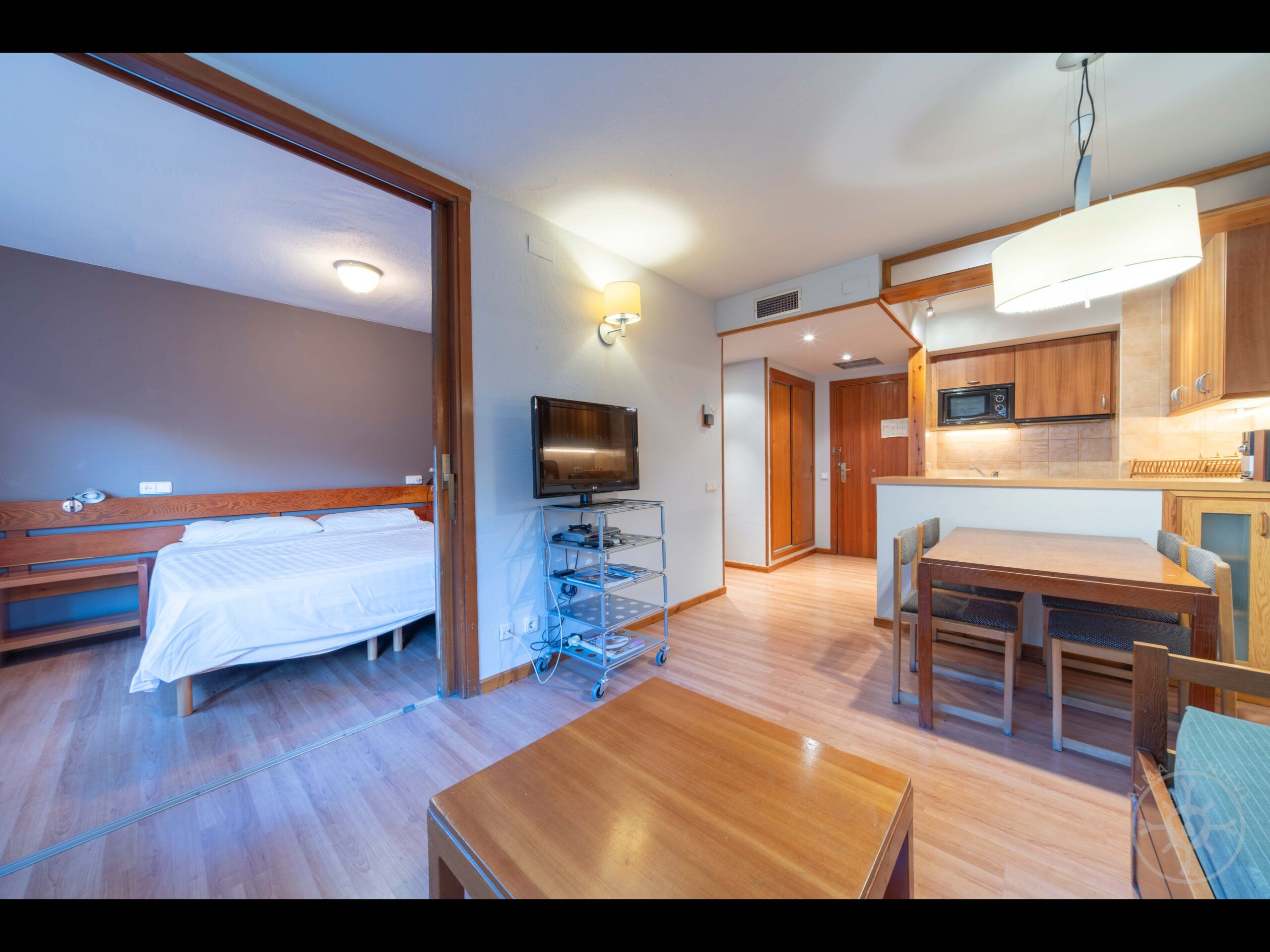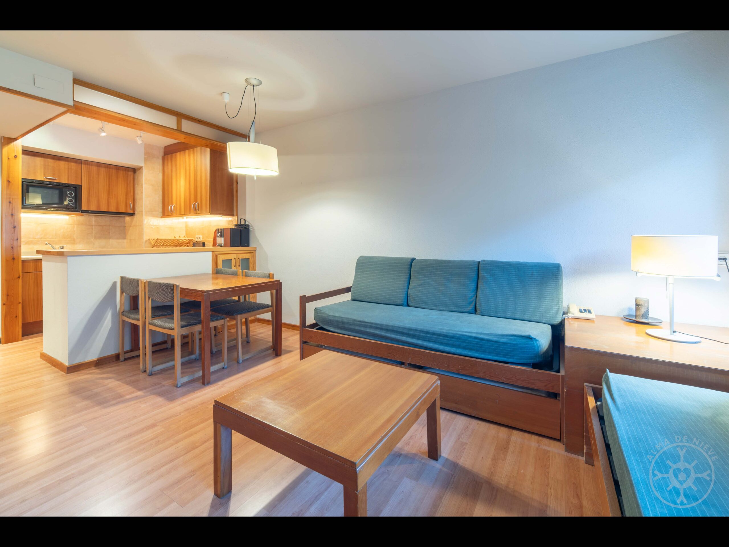 Este apartamento ofrece la posibilidad de reforma, permitiendo convertirlo en dos dormitorios con un baño, ideal para familias o grupos de amigos. Además, incluye el uso de una plaza de garaje y dos guarda esquís, facilitando el acceso a tus actividades invernales. El edificio cuenta con recepción 24 horas, un pequeño colmado, restaurante y cafetería y piscina climatizada para los meses de verano, esto hace que puedas disfrutar de la propiedad todo el año ya que cada vez mas gente elige el destino de montaña fuera de la temporada invernal.